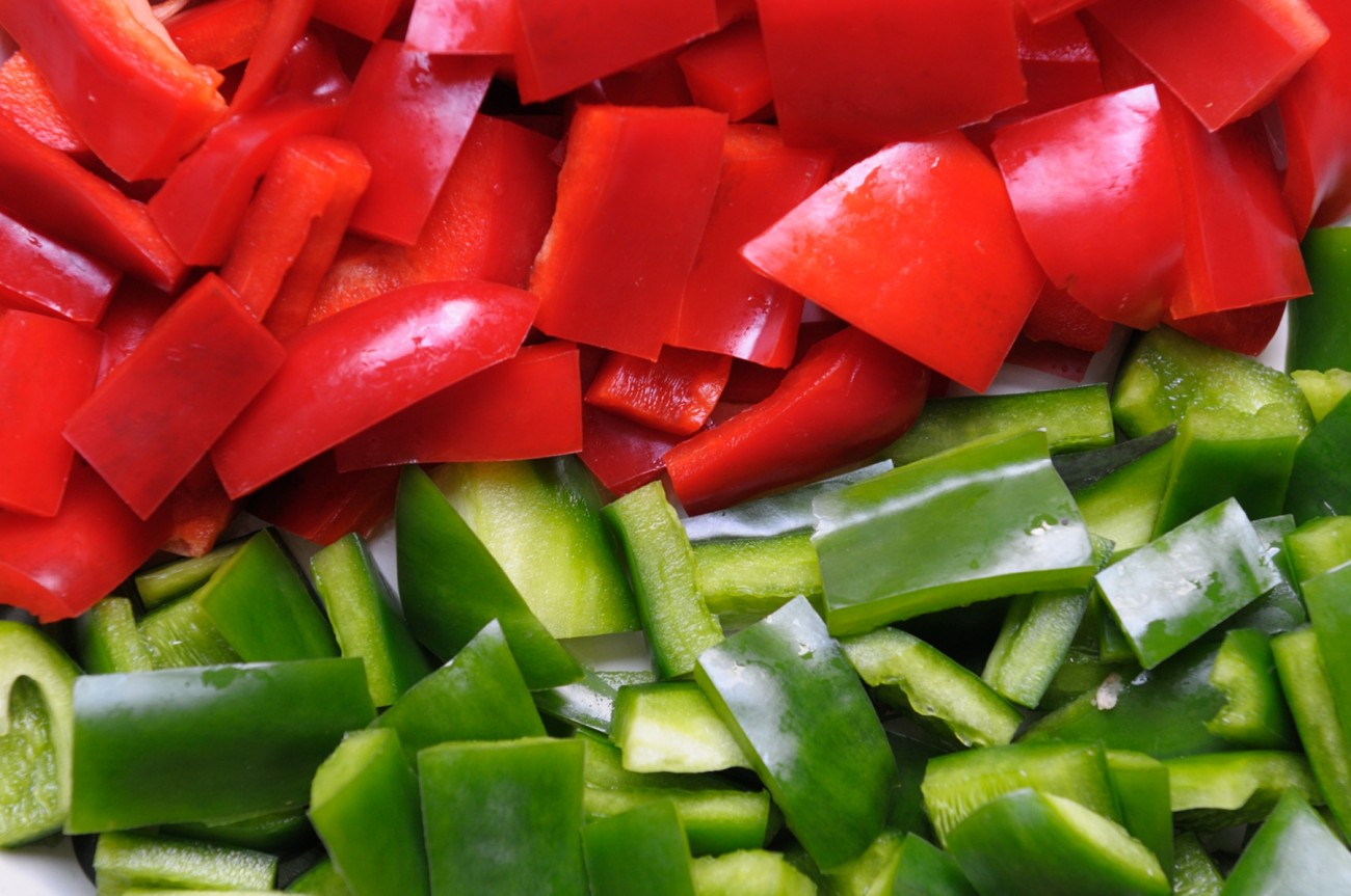 • 600 gramos de pimientos (morrones) rojos y verdes limpios y cortados en trozos