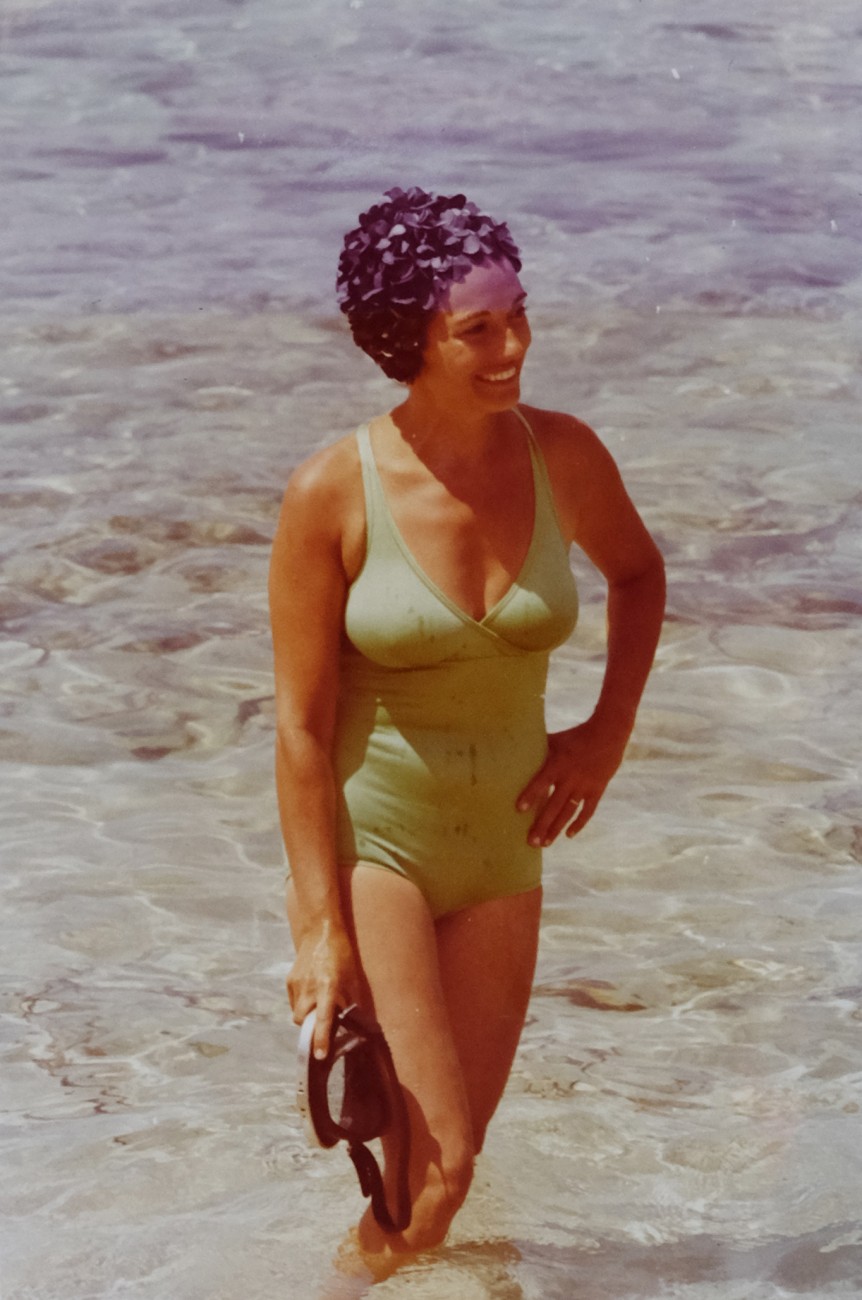 Rosa Vicenta, con sus sandalias de cuña y las uñas de los pies pintadas de carmín, bermellón o coral, un vestido estampado con el cuerpo ceñido y vuelo en la falda y el pelo negro recogido, a veces con uno de esos turbantes de playa que estaban de moda en los setenta, a veces sujeto con un pañuelo.
