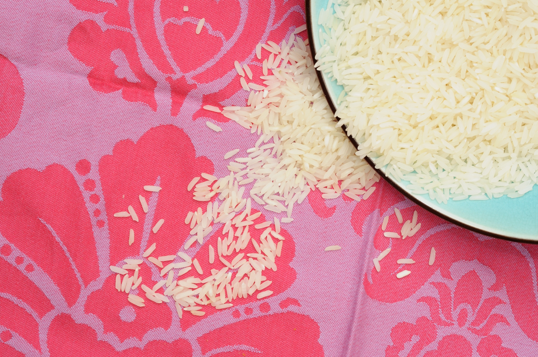 Mientras, preparamos el arroz jazmín, que tiene un aroma maravilloso, hirviéndolo en abundante agua salada y colándolo luego, y lo mantenemos caliente.