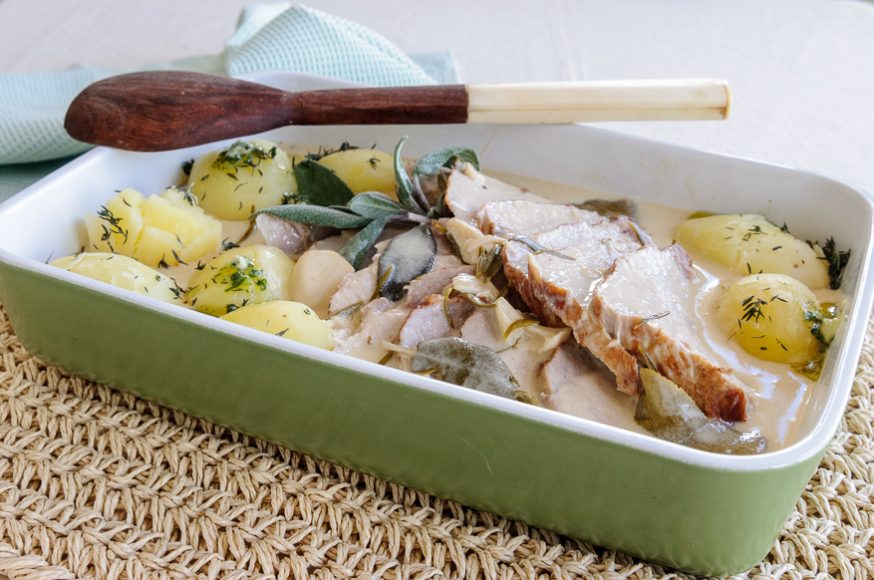 Esta receta es una adaptación del Pork Loin with Wine and Herb Gravy del precioso y ya canónico blog, Seasons & Suppers.
