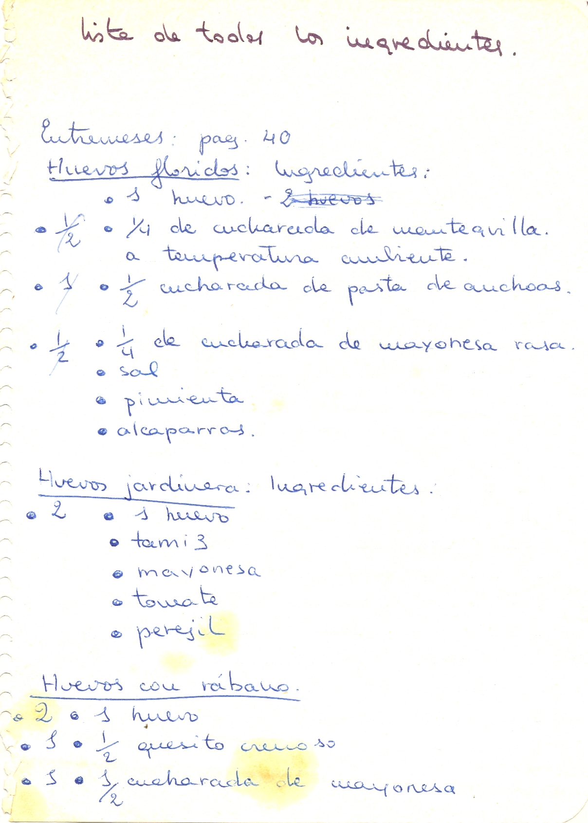 Y luego me hacía mis listas de menús…
